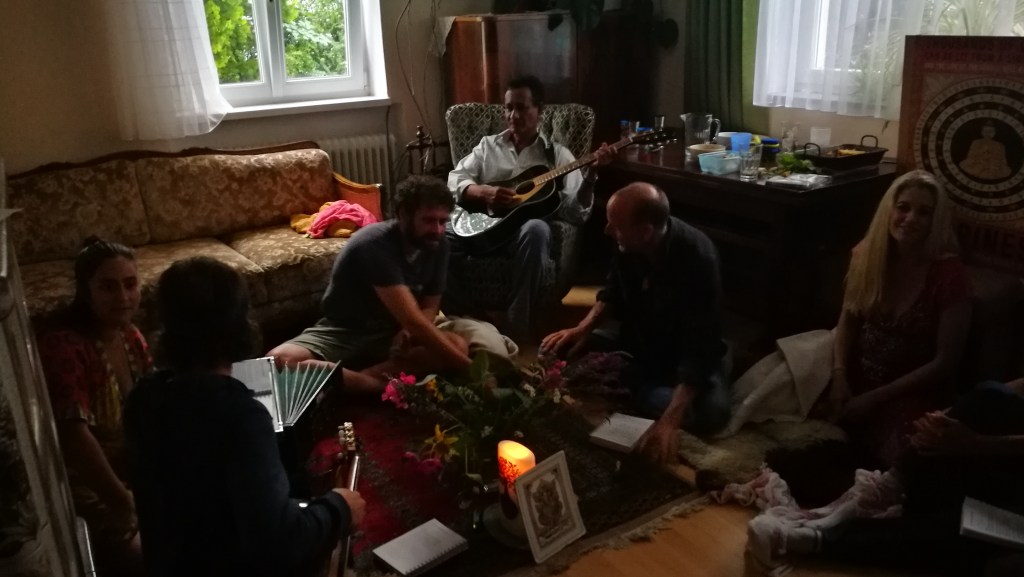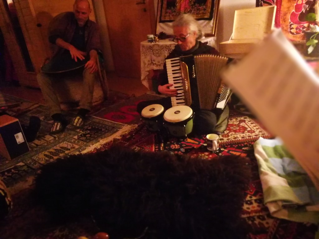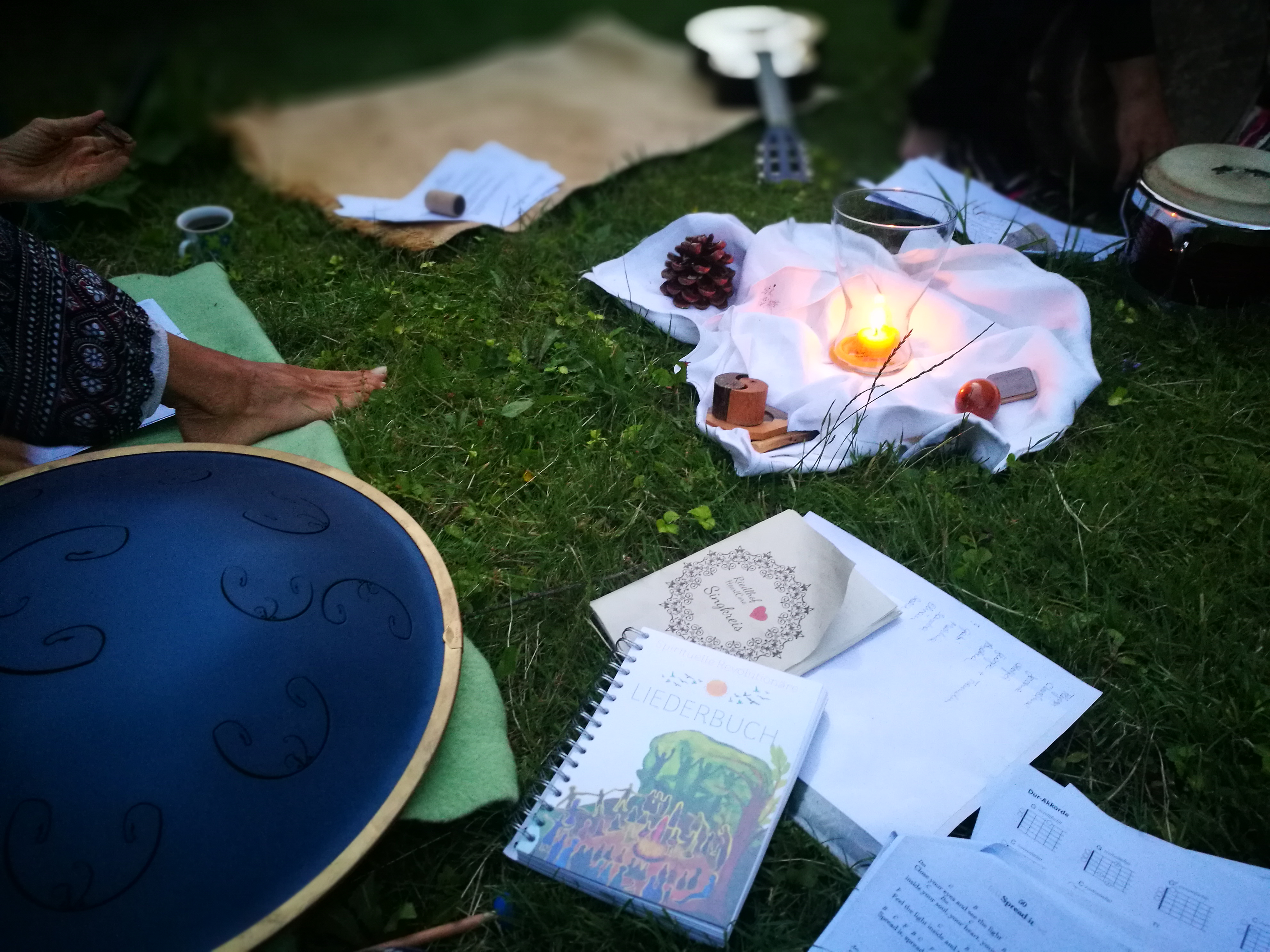 An unterschiedlichen Tagen ab ca. 18 Uhr mit Pot Luck Abendessen je nach Atmosphäre/Wetter/Stimmung am Garten-Lagerfeuer, im erdigen Mediationsraum oder im Kamin-/Klavierzimmer